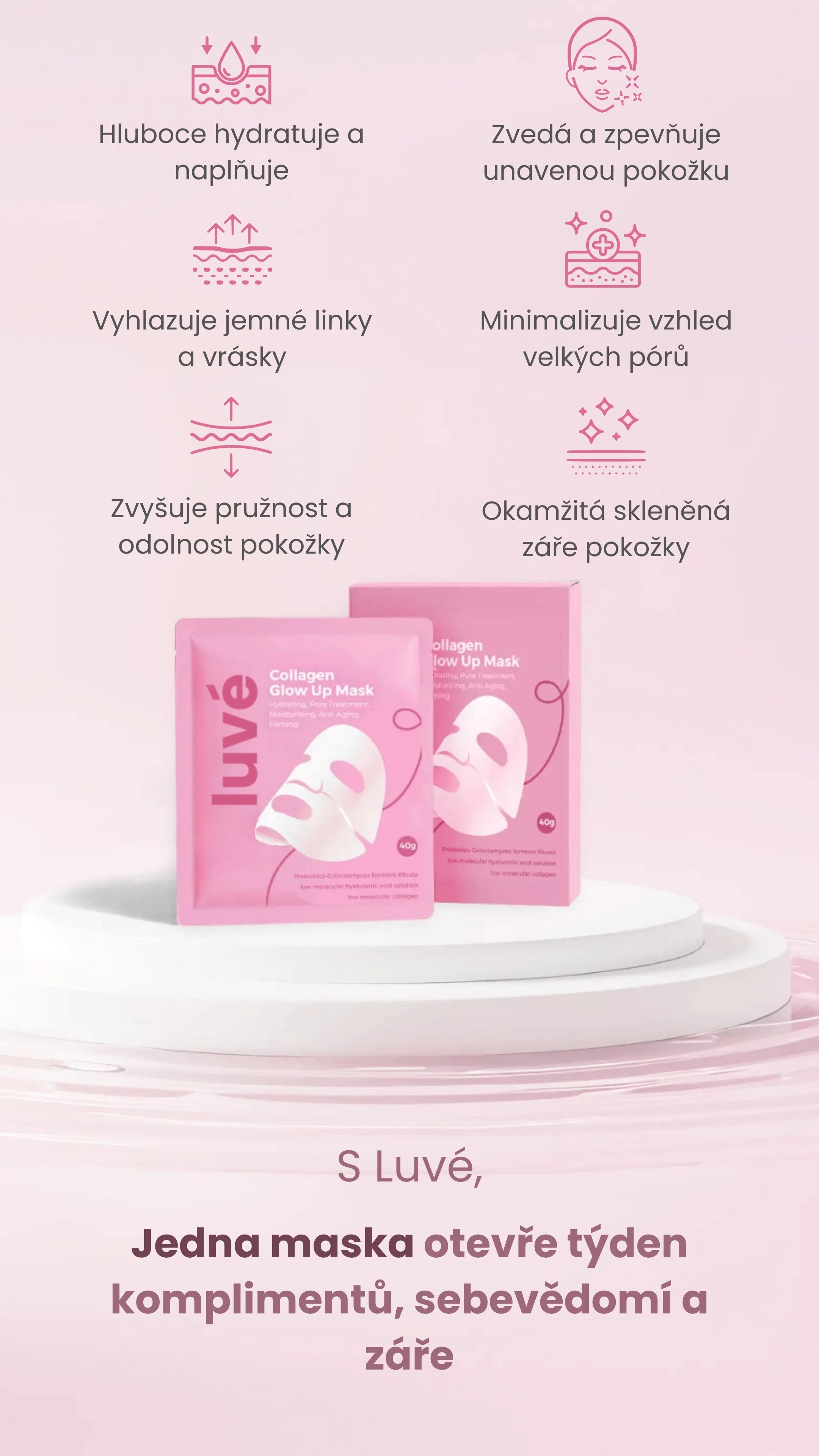 *Na základě 4týdenní klinické studie 30 žen, které používaly Luvé Bio-Collagen masku jednou týdně.